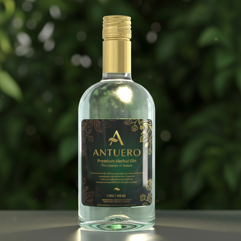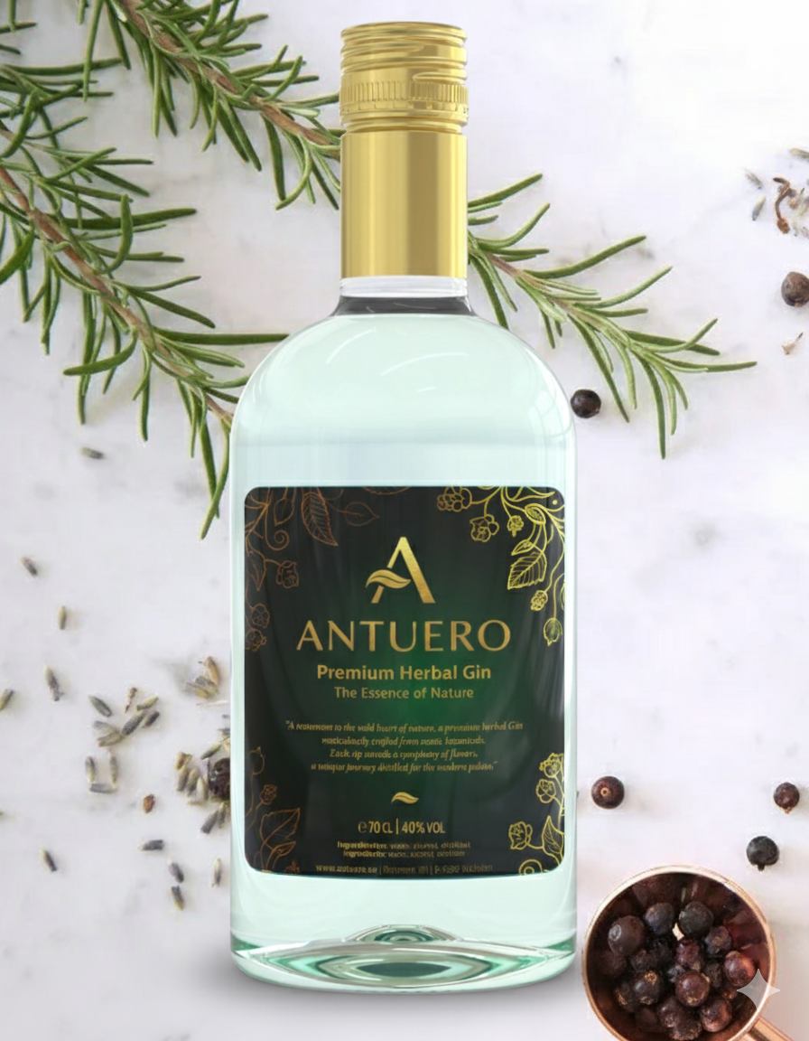 ANTUERO is a testament to the wild heart of nature, a premium herbal gin meticulously crafted from carefully selected exotic botanicals. 70cl - 40% VOL Packaging: 700ml PET bottle. Yes, our bottle is made PET plastic. It weighs only 50,5g, holds recyclable materials, doesn't break and is multiple times more sustainable than other materials! ANTUERO has a floral-fruity contemporary flavor. While juniper remains the backbone, the presence of pomegranate, pomegranate flower, red currant, hawthorn, and orange adds pronounced fruity and floral tones, shifting the profile toward a modern, aromatic style. Shipping: parcels are ready for shipping in Belgium and Spain. Any other country we will ship on request (send mail to info@antuero.eu)
